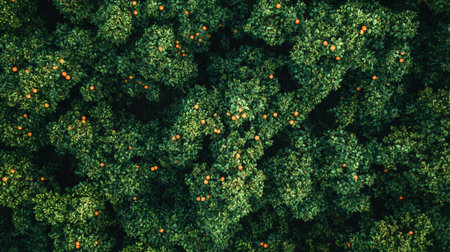 Aerial view of orange tree in the garden. Nature background.