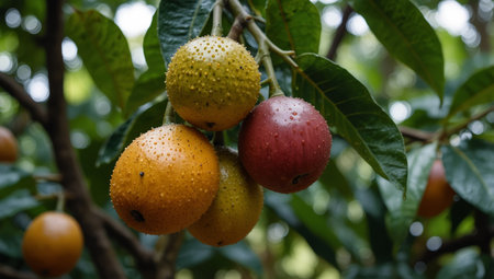 The Davidson s plum at dawn soft golden sunlight kissing leaves clean air natural color