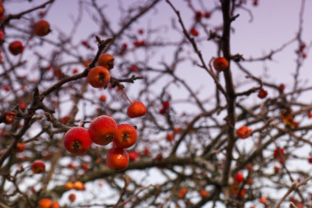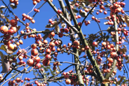 Apples on the branches of crab apple in the fall