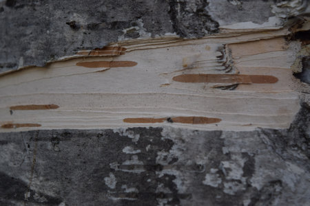 Detailed image of tree bark with a smooth, light-colored section, showcasing natural textures and patterns.