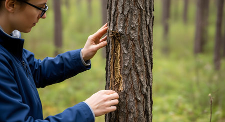 tree trunk showing signs of bark beetles, created with generative ai