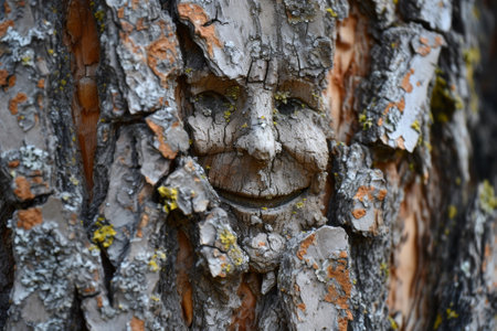 A face carved into the bark of a tree trunk, AI