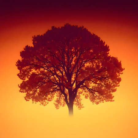 A stunning artistic depiction of a vibrant tree silhouette against a colorful pastel background, showcasing the beauty and tranquility of nature.