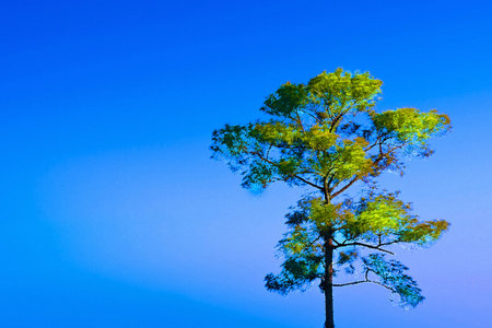Double exposure of a single tree with forest overlay in the sunlight
