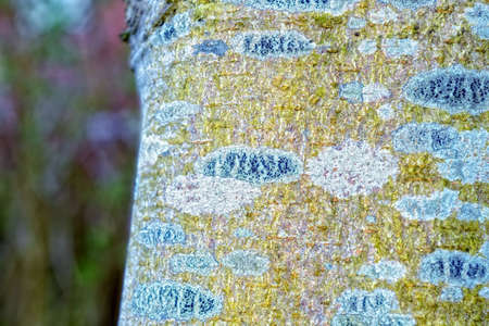 The bark of the tree, the texture of the wood, overgrown with moss. The bark of a thick deciduous tree can be seen as a delicate layer of moss which gives a greenish color. Closeup,macro photography