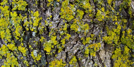 Yellow mold on the tree bark. Texture. Banner. Beja, Portugal.