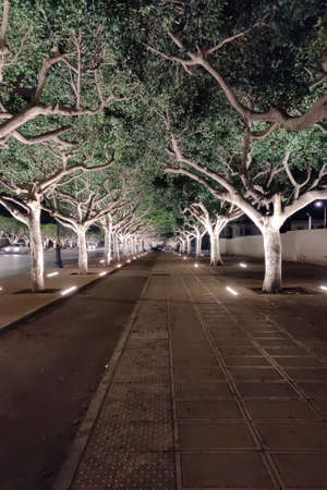 Treeline in a empty street at Rabat, Morocco