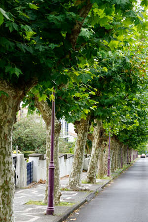 Residential area scene next to the tree lined street