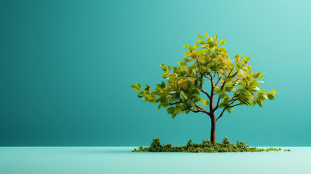 a majestic tree stands tall against a solid background, its lush green leaves and sturdy branches stretching upwards, providing ample copy space for creative text overlays, logos, or graphics, perfect for nature-inspired designs, environmental themes, or outdoor advertising campaigns. ai generated