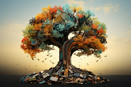 A merging of a tree and a digital circuit pattern, representing the combination of nature and technology in creative thinking.