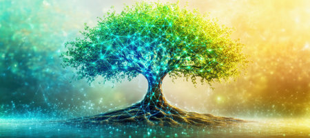 Luminous tree with interconnected network visualizing the harmony between nature and digital world