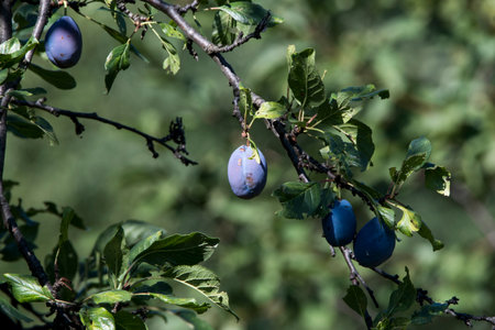 Juicy damsons ready for harvesting, with a shallow depth of field