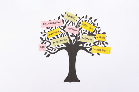 Human rights, tolerance, equality, ethnic and diversity concept, colorful tree, gender acceptance, religion and multicultural society