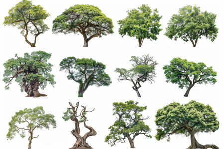 High Definition Collection Tree Isolated White Background Natural Landscape Design Element