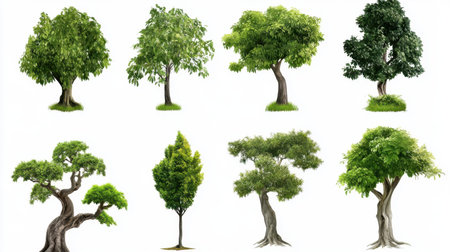 This image showcases a diverse selection of realistic green trees, perfect for enhancing creative projects, nature themes, and design elements.