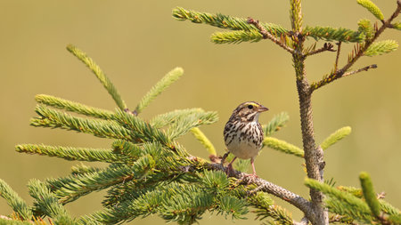 A small brown and yellow bird sits quietly on a branch surrounded by fresh green leaves showing the vitality of spring in a natural setting.