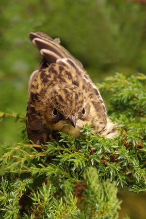 Eurasian pipit (Emberiza citrinella) perched on a branch