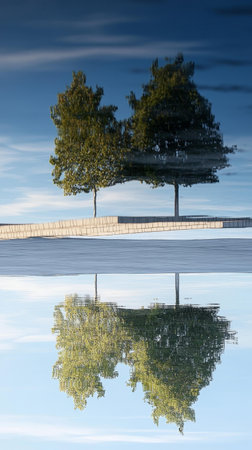 Reflected Trees Against a Blue Sky