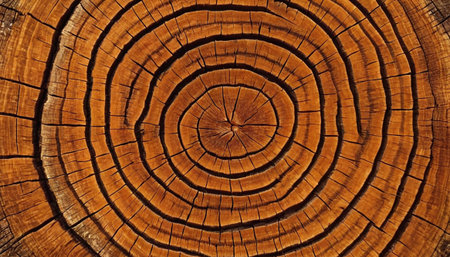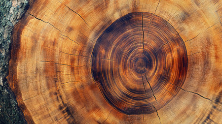 A stunning close-up of tree ring patterns showcases the intricate textures and warm tones of natural wood. Perfect for nature-inspired projects and rustic themes.