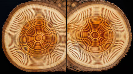 Detailed shot of tree rings on a cross section, revealing the growth history and organic beauty of the wood