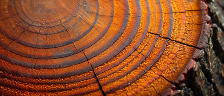 Cross section of tree trunk showing growth rings. Abstract background and texture for design.