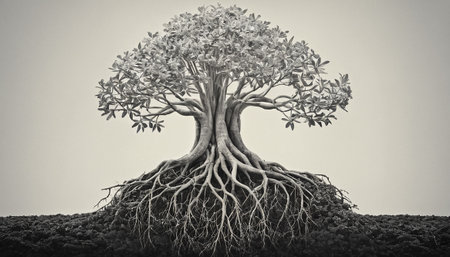 Intertwined tree roots symbolizing deep connections
