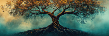 A stunning abstraction illustrates a tree of life, with its intertwining branches and roots, symbolizing the essence of growth and connection.