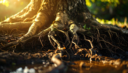 Nature's Illuminated Network: Capturing Tree Roots Bathed in Sunlight