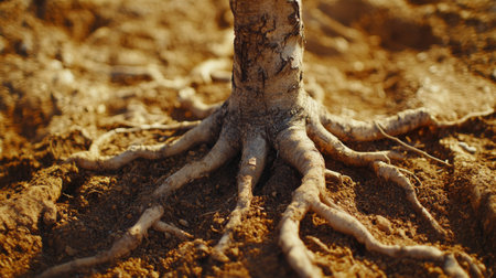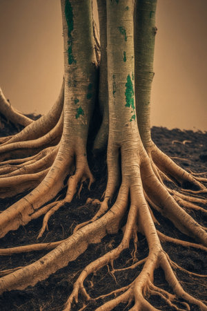 AI Generated. Intricate Tree Roots in Natural Soil Setting