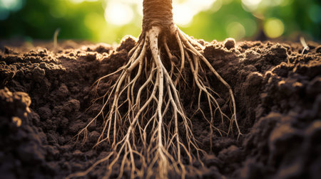 tree roots growing deep into ground, created with generative ai