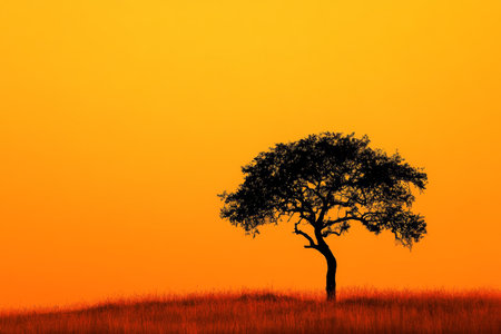 Solitary tree silhouette against vibrant orange background capturing nature s tranquil beauty
