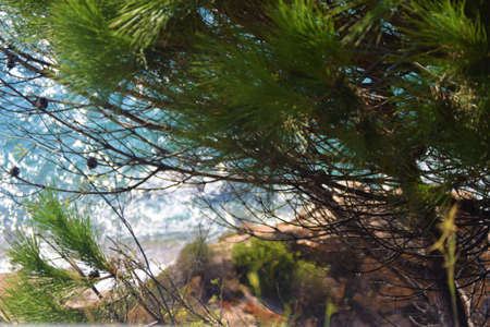Pine tree on the background of the turquoise sea in Kemer, Turkey