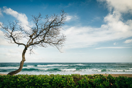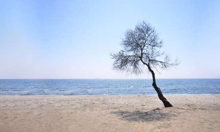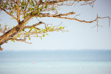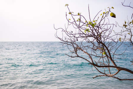 Twigs or branch tree at caost with ocena blue sea. travel summer holidays or environmental conservation concept.