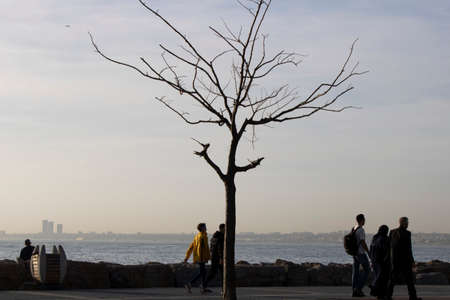 Istanbul, Turkey - November-07.2019: People sitting on the beach . Photographed outdoors in autumn.