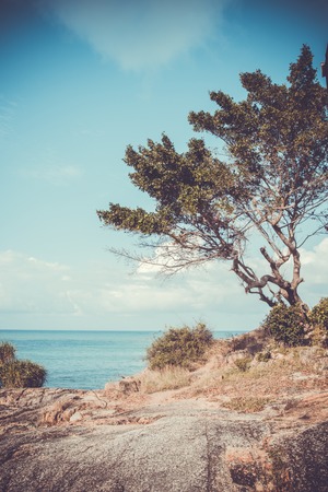 tree by the sea in retro colors. Koh Samui. Thailand