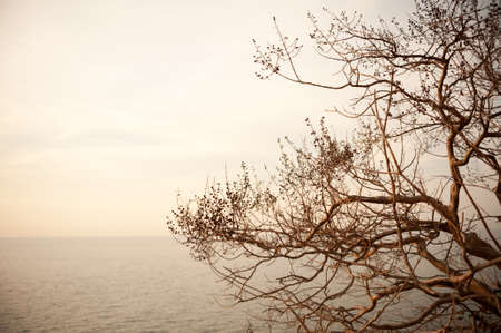 Dry tree against sea. Blue toning