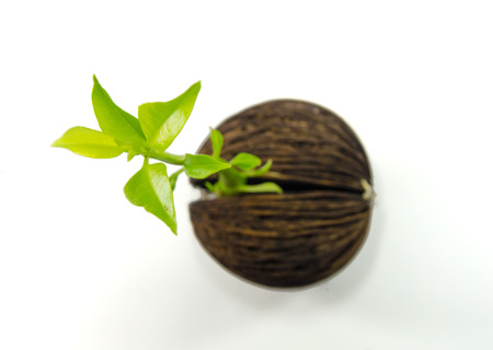 Cerbera odollam or Suicide tree fruit seed on white background.