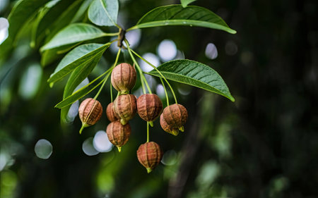 Tahongai, guest tree (Kleinhovia hospita), known as Timoho (Java, Indonesia) leaves and seeds, a tropical tree native to Indonesia, Malaysia and other parts of tropical Asia.
