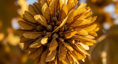 Maple seeds in beams of the autumn sun