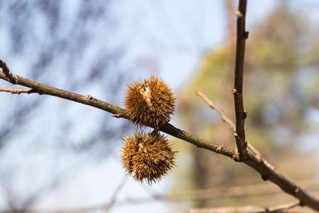 fruit of ripe chestnut on the branches of the tree