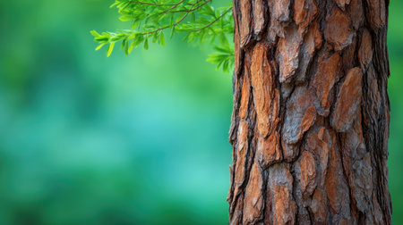 This close-up image showcases the intricate texture of pine tree bark against a soft green blurred background, capturing the essence of nature's beauty and serenity.