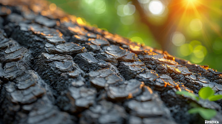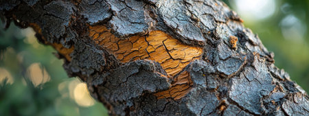 This close-up image captures the intricate textures and rich colors of tree bark, showcasing nature's beauty and complexity in an artistic manner.