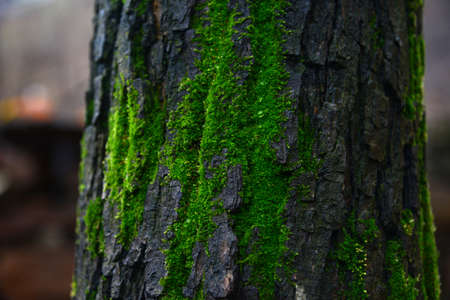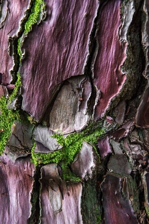 Texture of the old tree bark with moss on the bark