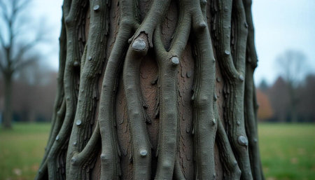 Intricate Tree Trunk Bark Texture in Autumnal Landscape