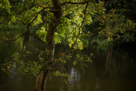 NATURAL ENVIRONMENT - A young oak tree by the lake