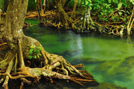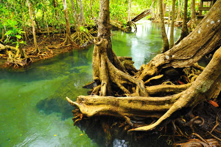 Amazing crystal clear emerald canal with mangrove forest at Thapom Krabi Thailand ,Emerald pool is unseen pool in mangrove forest.