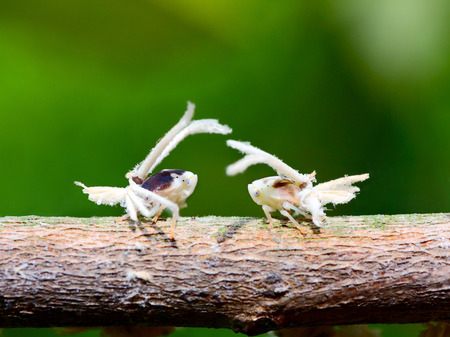 Couple of planthopper (Metcalfa waxy) sucking on a twig