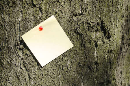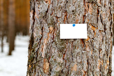 White sheet of paper for records pasted on a tree