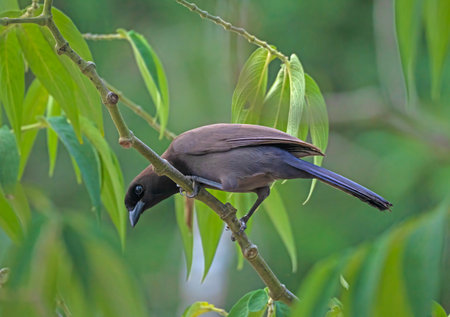 A Purplish Jay Searching in the Forest in Amboro National Park in Bolivia