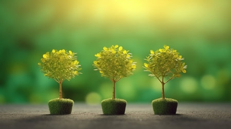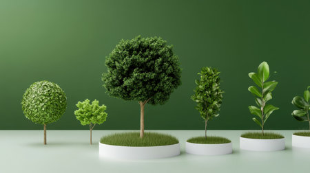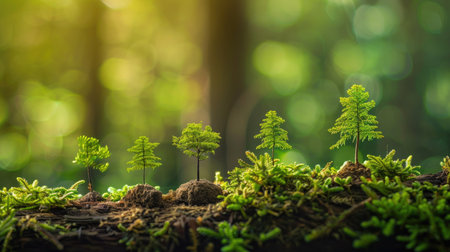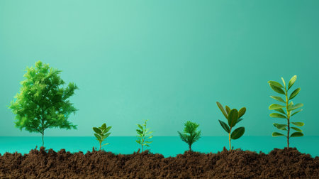 Various small trees flourishing on a green background, embodying the spirit of environmental stewardship and World Environment Day